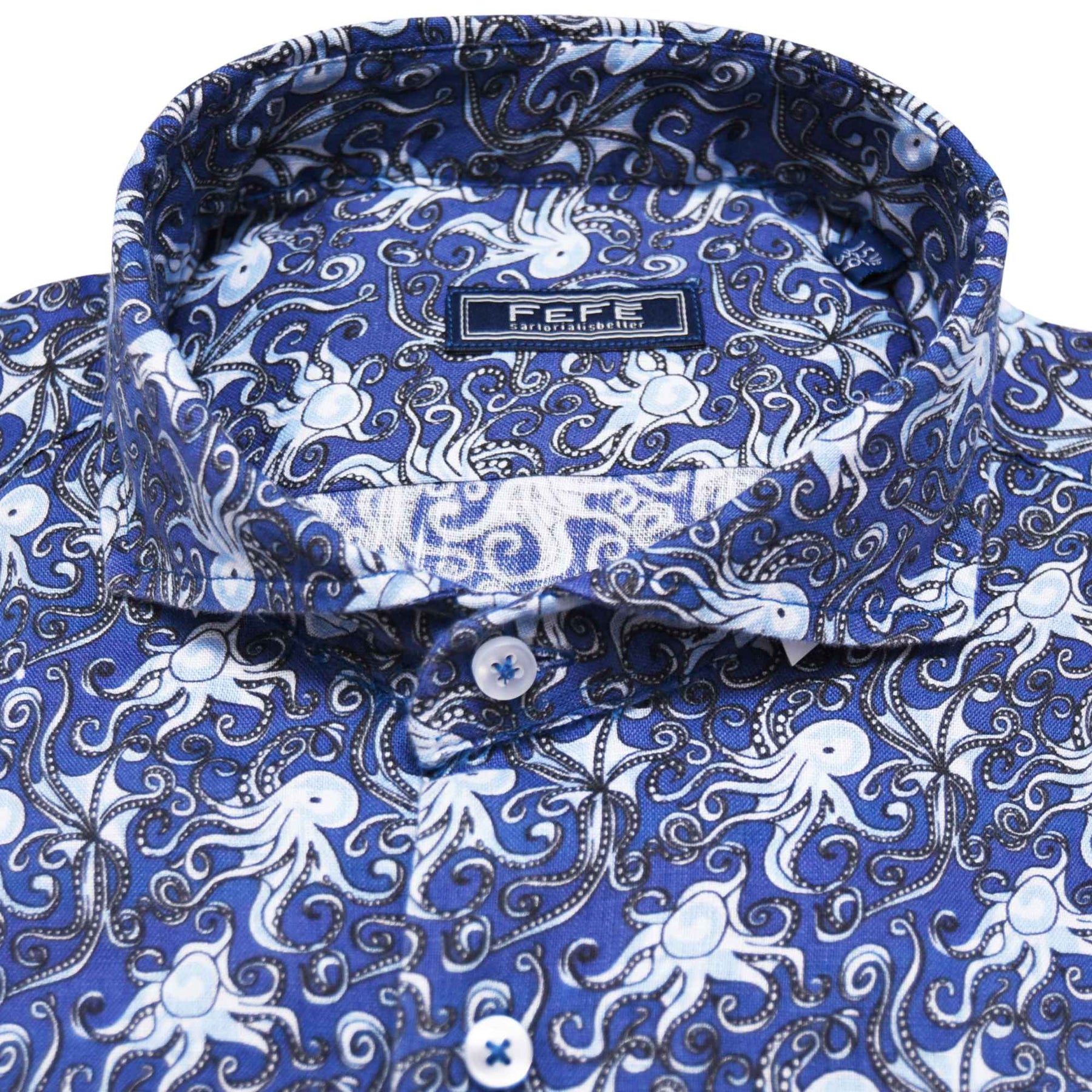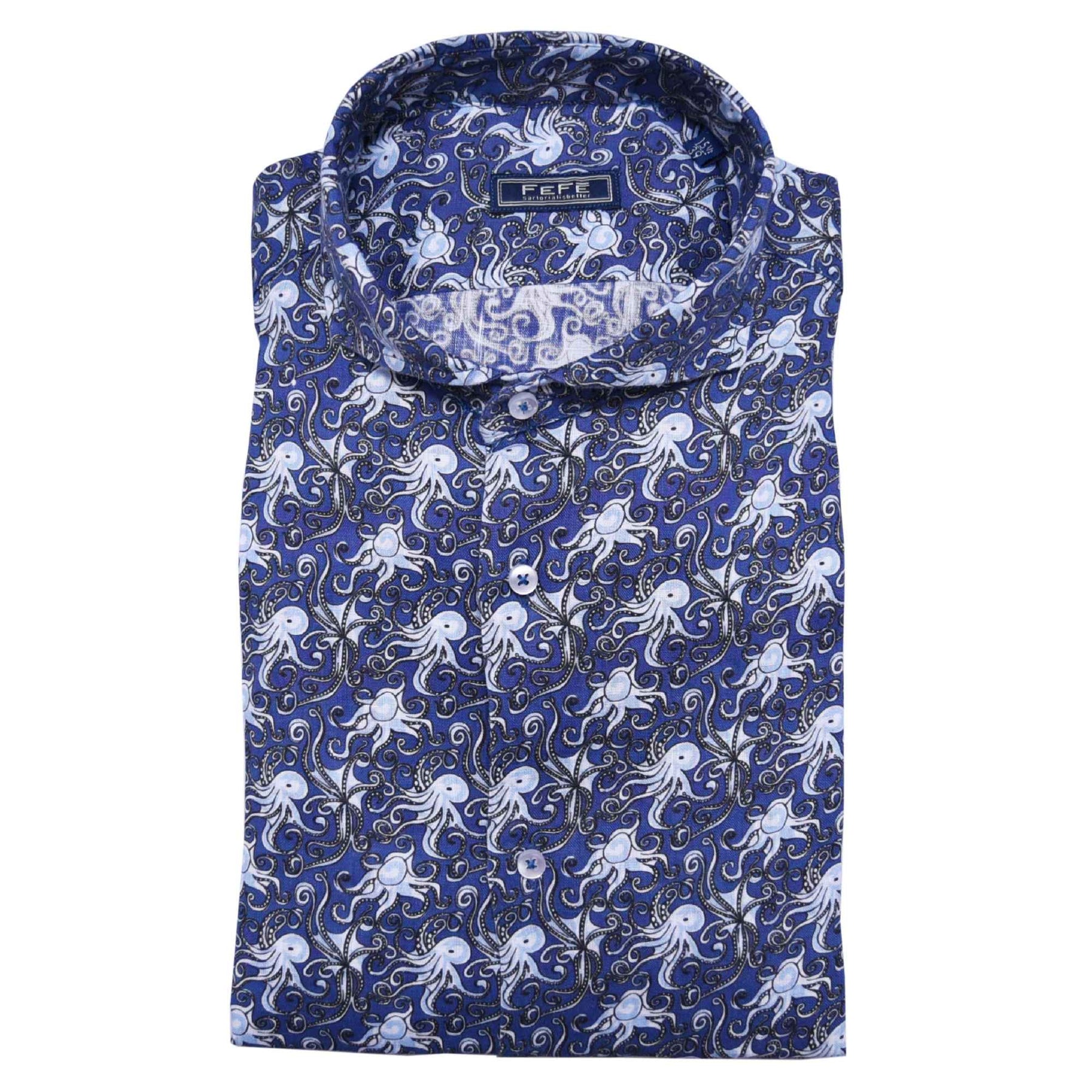 Blue Octopus Linen Shirt Shirt European clothing, Men’s
