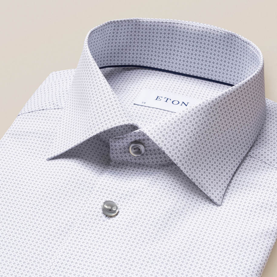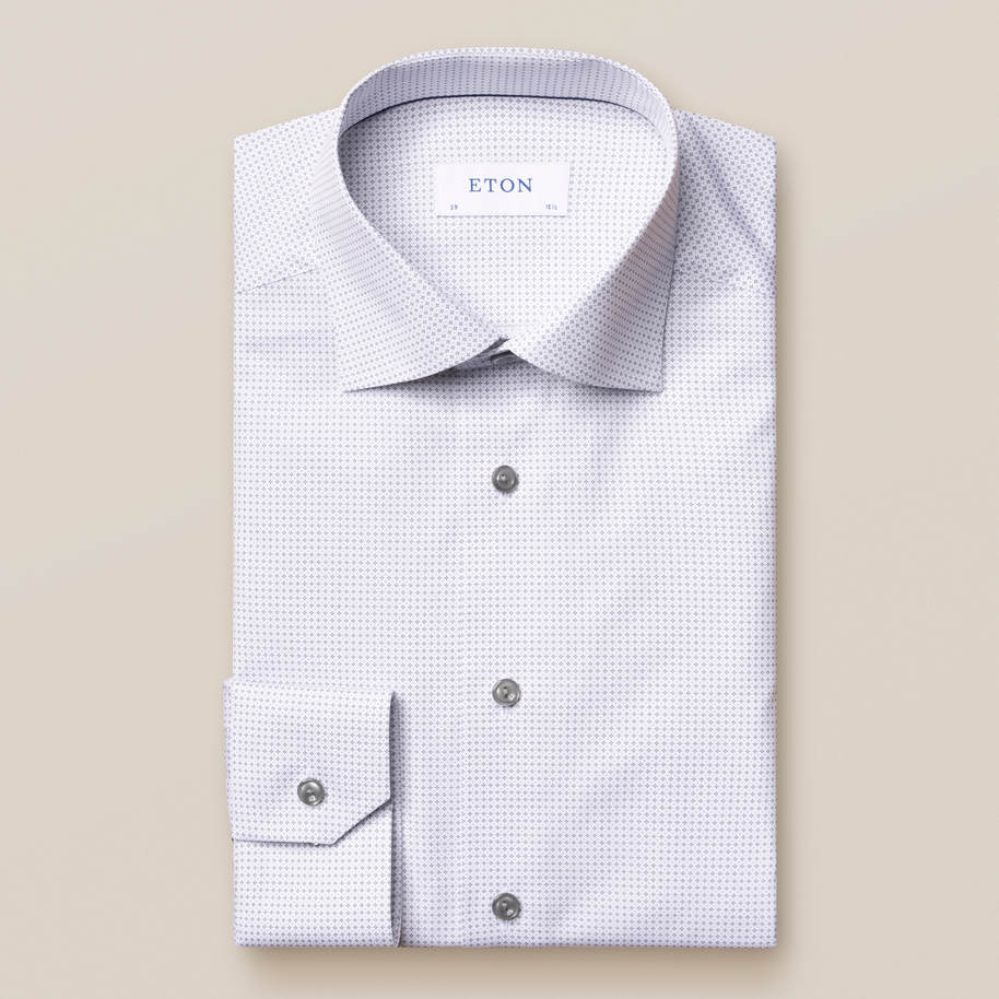 Printed with a fine micro pattern this versatile style is perfect for any occasion. The tone-in-tone buttons adds elegance to this design. We suggest wearing it with a bold patterned tie, a matching pocket square and a trim suit for a sharp business outfit.