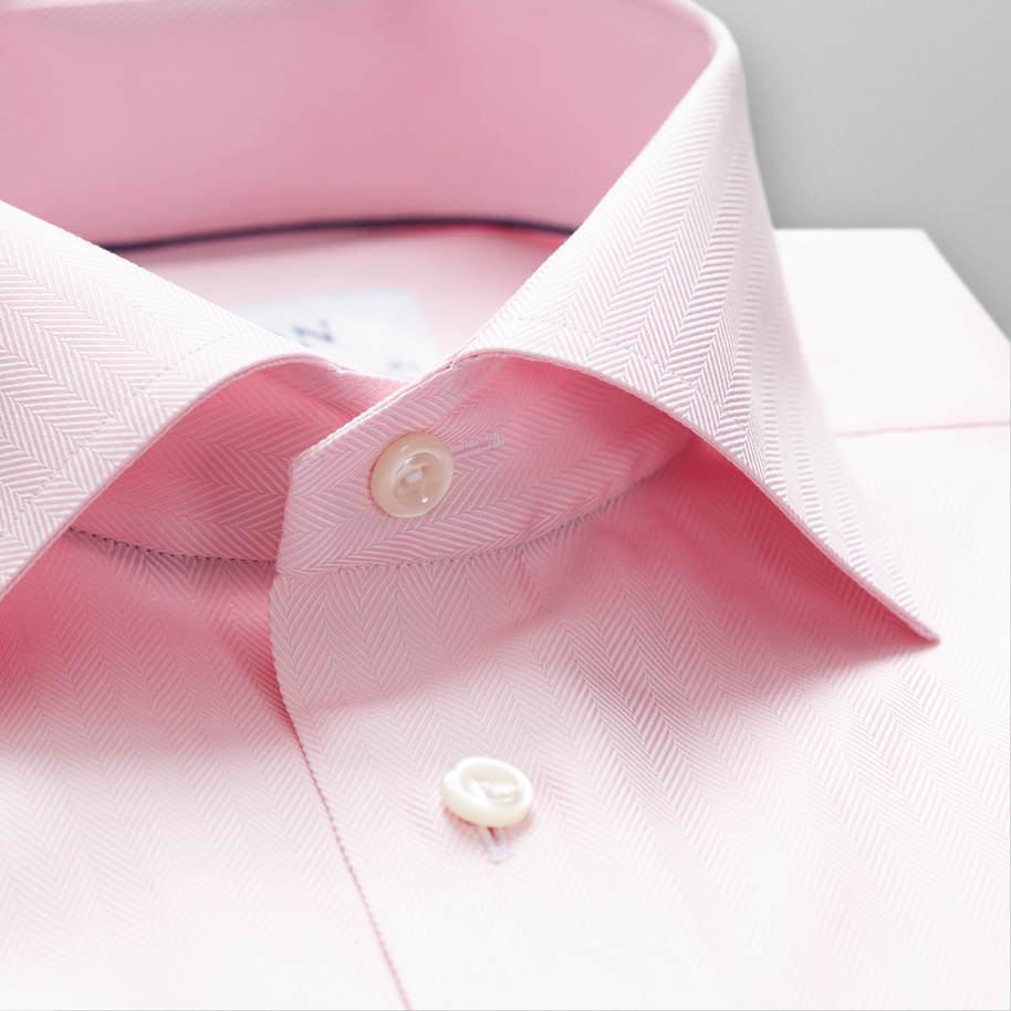 A vibrant pink shirt in our signature herringbone twill weave that blends rich colours, timeless details and elegant texture. Wear it with a navy suit and our polka dots tie for a modern, yet timeless business outfit.